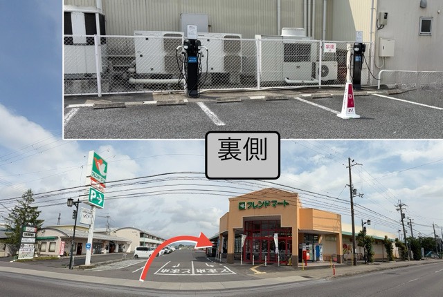 敷地に入って、店舗付近の右側にあります。 近くには美味しいお店もあり、充電だけでも快く対応してくださった店員さんにも好印象です。 写真更新