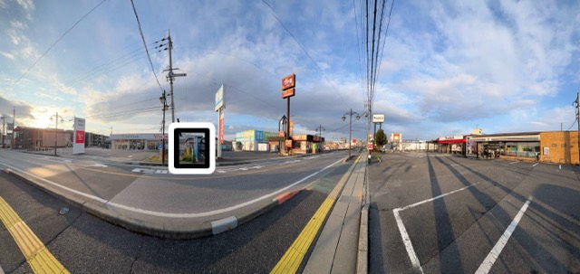 日産の看板の側の建物と洗車機の間にあります。写真改定