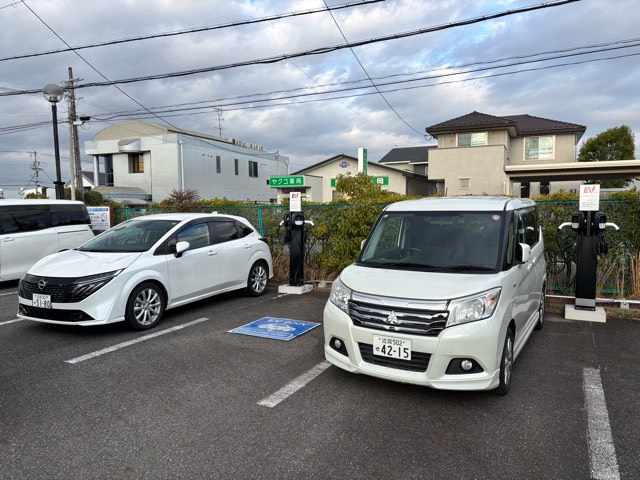 月曜・第1火曜・第3日曜定休。 設置場所:駐車場敷地内、7番車室と15番車室にEV充電器があります。 どなたでもご利用いただけます。 最大出力6kW