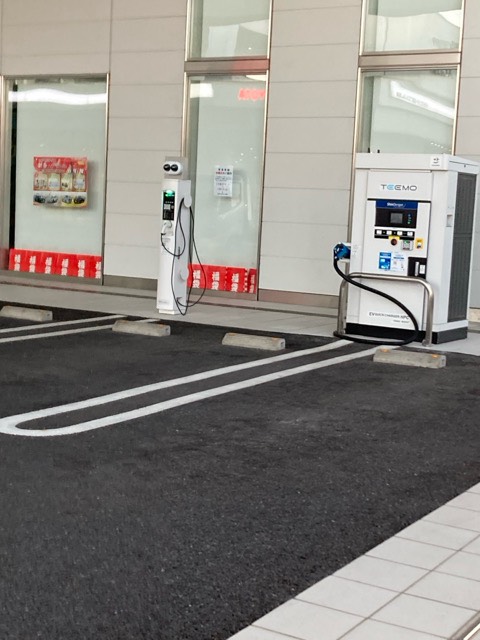 敷地に入って右側にあります。 充電カードも使えるなら便利だと思いますが、充電カードは使えないみたいです。