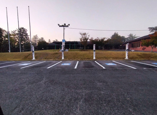 設置場所:入り口より道なりに進んだ先、クラブハウス前ロータリー付近の駐車スペースにEV充電器があります。 どなたでもご利用いただけます。 最大出力6kW
