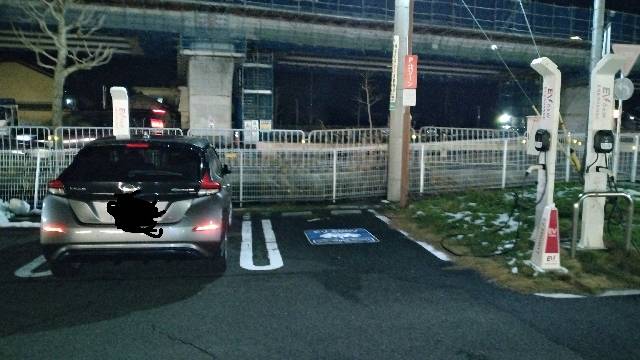 後ろ向き駐車すると、リーフは充電器ケーブルがギリギリになりますね