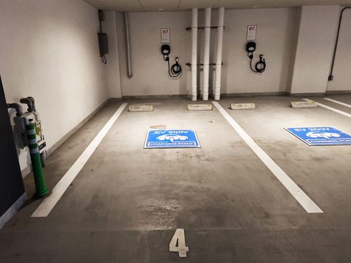 4基正常稼働中。 EVマスの充電スポットコーンも増設されており改善のあとが見られます。