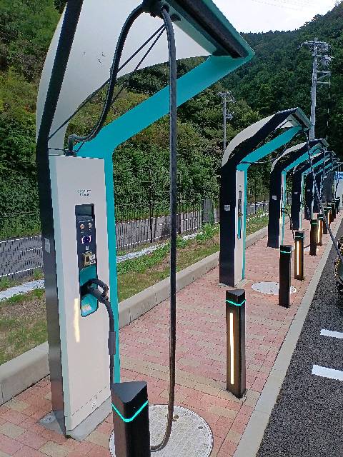 祝祭日24時間90kWの充電器が6基(同時充電台数に応じ総出力が200kW以下となる)あります。 ★データチームより★ 最大出力は、お車が対応しており、かつ1台で充電した場合の参考値です。