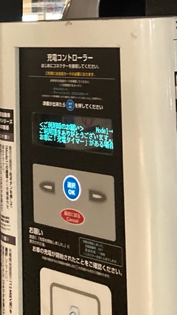 買い物の時に使わせていただきました。 今回は急速充電器が利用中だったので、隣のAC3kWです。