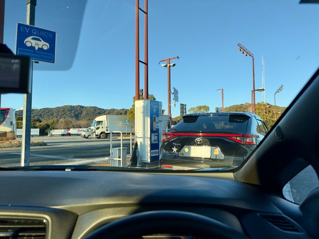 SAがすぐ後ろにあるので充電中は買い物やトイレに行けます。