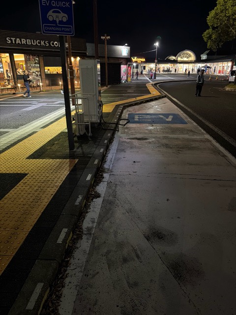 SAがすぐ後ろにあるので充電中は買い物やトイレに行けます。