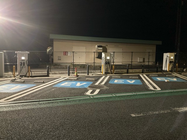 150kWの充電器が1基(2台同時に充電可、2台充電時は最大出力90kW)、90kWの充電器が2基(2台同時に充電可、2台充電時は最大出力56kW)あります。 ★データチームより★ 最大出力は、お車が対応しており、かつ1台で充電した場合の参考値です。