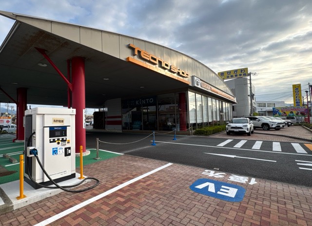新電元工業(株)150kW充電器です。eMP加入カードでは使えず、トヨタの充電カードorビジターでの充電になります。販社敷地入りすぐ左手、通り沿いに設置されてます。