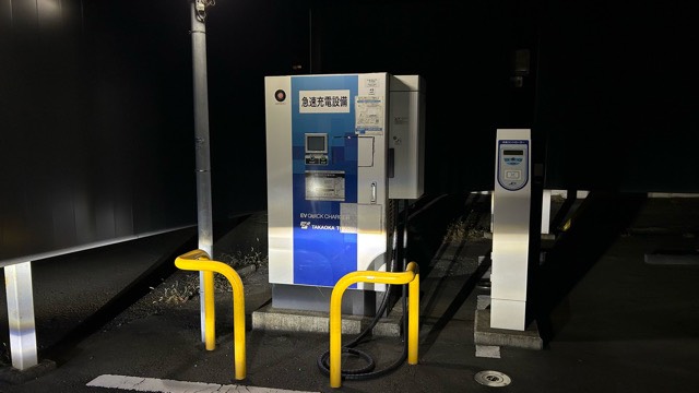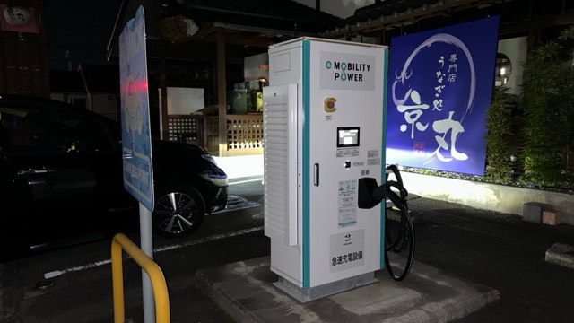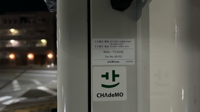 DAIHEN Corporation製50kW器です。店舗正面に設置されてます。営業時間内で使用可能との表記ですが24時間いつでも使えそうです。