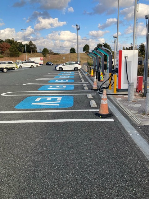 90kWの充電器が1基(2台同時に充電可)あります。 ★データチームより★ 最大出力90kWは、お車が対応しており、かつ1台で充電した場合の参考値です。
