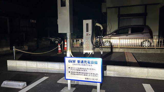 初めて利用させていただきました。問題なく充電できました。戸田・土肥方面は峠越えのルートを通ることが多く、ここに充電スポットがあるのはロケーション的に有り難い。ただ駐車場が建物に面していて前向駐車の表示があるのでプラグの差し込み口が後ろ側にある車はケーブルが届くか要注意。