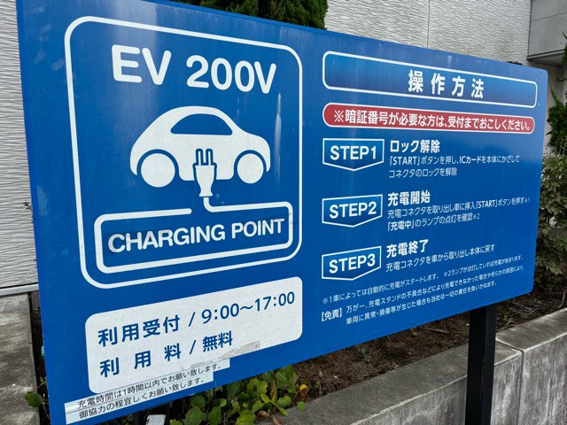 祝祭日9:00~16:00最大出力6kW 施設の電気容量により一時的に充電器の出力が変動する場合があります。