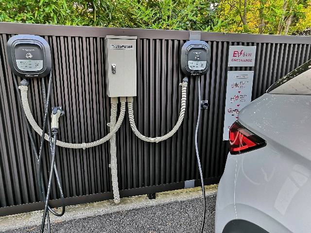 充電出来ました。 本日宿泊です。 バスが入るため、端っこに寄せて、充電。 快適に満タン充電出来ました。 ただ、つなげっぱなしにすると、車両側で満タンになり充電停止しても、アプリで止めない限り、チャージ料金かかるみたいで、分数でチャージするのは、少し怖いなぁと思いました。 電力量でチャージ料金をお願いしたいところです。 宿泊のお客様ではなくても、宿泊の予定のお客様がいない、もしくは、いない時間帯ならフロントに言えばチャージさせてくれるみたいですよ。 宿泊者優先みたいですが、専用ではないということですね。