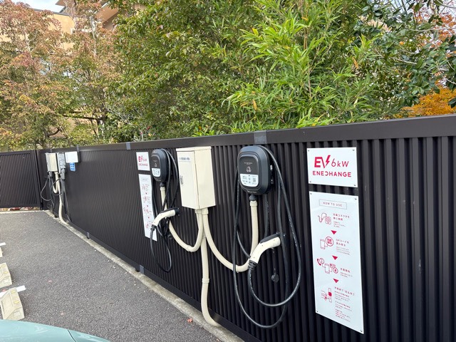 ホテル入口右側に2台の充電器があります。 この日はホテル送迎車が停車しており利用することができませんでした。