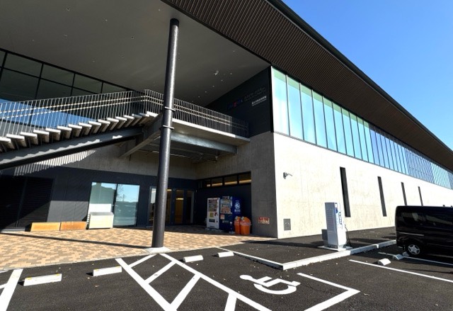 (株)東光高岳製50kW器です。体育館C1駐車場入りエントランス過ぎて外階段の近く、体育館南側の駐車枠に設置されてます。