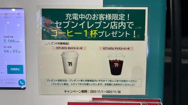 • 充電中のお客様限定で コーヒーのサービスがありました。 ちょっとしたアンケート回答が必要ですが