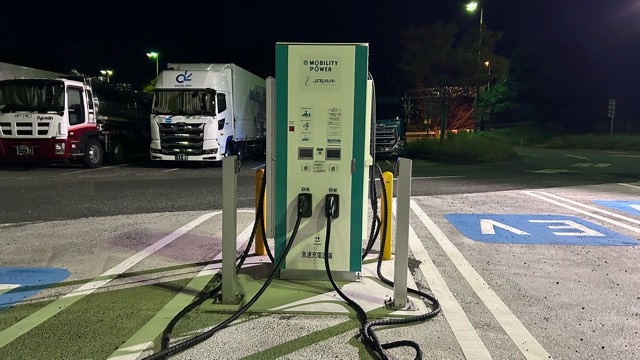 • 高速からSAに入り左手に進むとあります。90kwが2台、50kwが1台です。ETC出口と間違いに注意。