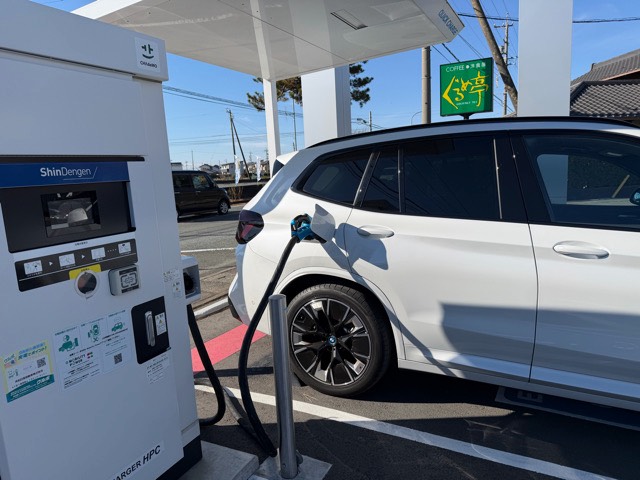 【車種】: BMW iX3 【充電速度】: 普通 【充電した時間】: 約30分 【ひとこと】: 正面入り口から入って充電器の場所がわからなかったのですが、お店の方が出てきて丁寧に教えて下さいました。