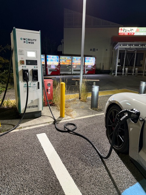 先にテスラが充電中でしたが、少しだけ同時充電。迷惑かもしれないので10分程度で早々に引き上げました。実測79キロ出ました。