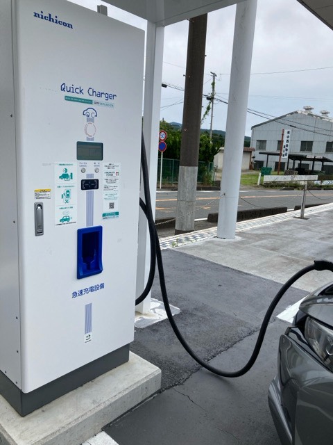 ニチコン製50kW器です。販社敷地入りすぐ左手、県道沿いに設置されてます。転回スペース広いです。