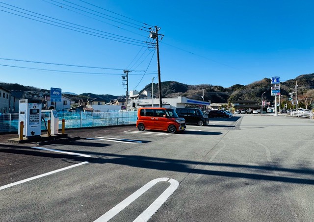 24時間利用可能なので、宿泊中も充電可能です。 第二駐車場にあります。