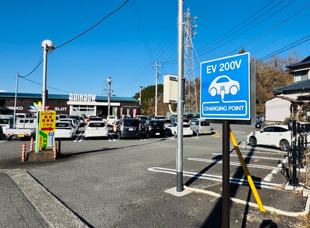 ENECHANGE認証 PHIHONG TECHNOLOGY CO.,LTD製6kW充電器×4器です。パチンコ店敷地入りすぐ右手に設置されてます。