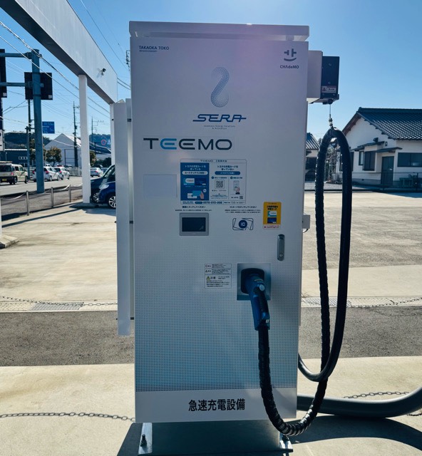 (株)東光高岳製150kW器です。販社敷地入りすぐ左手のエントランス屋根下に設置されてます。TEEMOカードまたはEV・PHV充電サポートメンバーズカードにて利用可・カード無い場合、TEEMOアプリを登録の上クレジット決済にて利用可。
