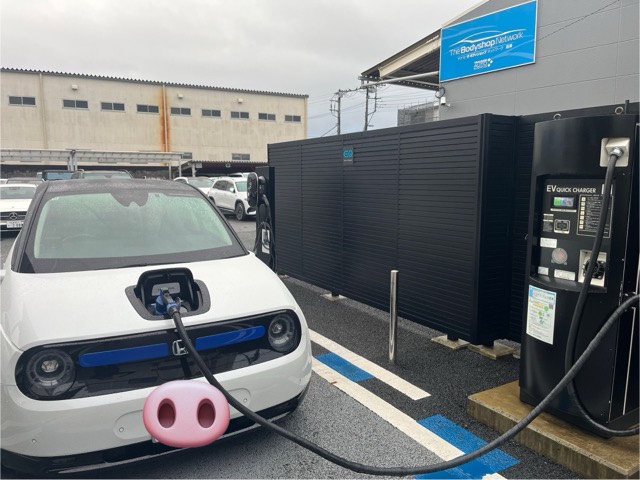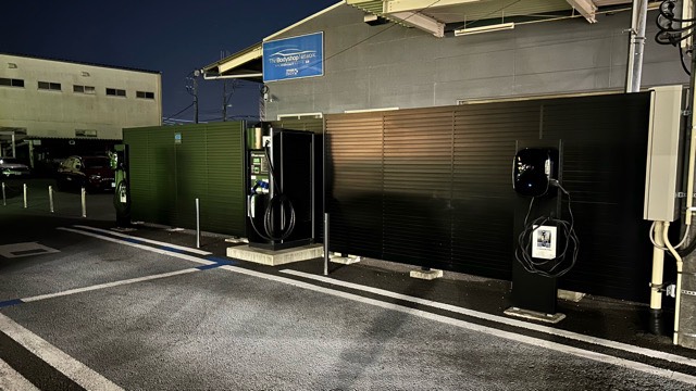 新電元工業(株)50kW充電器です。中古ショールーム裏手に設置されてます。eMP加入カードで充電出来ます。