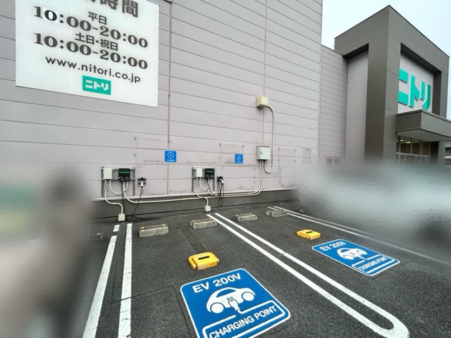 モリテックスチール株式会社製6kw普通充電器が2台店舗入口近くに設置されていました。プラゴから55円/10分から利用可能でe-Mobility Power系カード等は使えません。1時間は、充電枠予約もできるのでお出かけ前に予約すると確実に利用できて便利ですね!