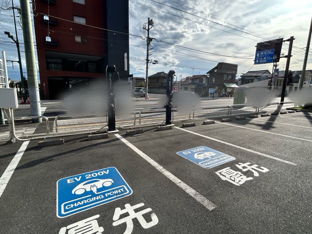 6kw普通充電器が2台設置されていました。DMM EV ONアプリからのみ利用可能なため、emp認証カード等からは利用できません。佐野市役所が目の前にあるので、充電しながら用が済ませられるのはいいですね。EV優先マークもありました。