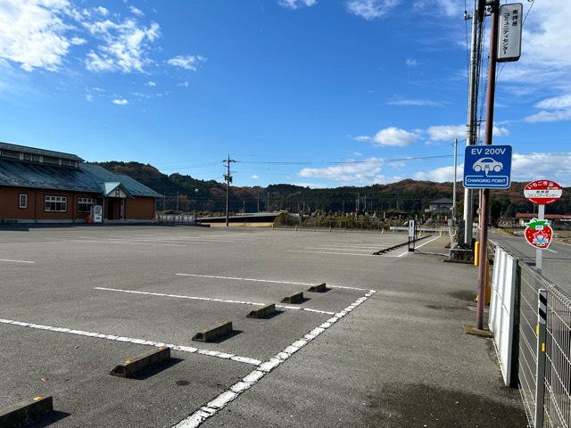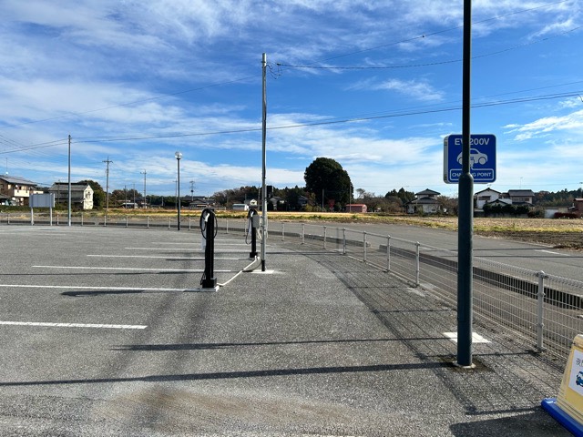 日東工業製6kw普通充電器が駐車場入り口付近に2台設置されていました。24時間利用できるようです。e-Mobility Power系カードなどからは使用できず、Terra Chargeアプリまたは充電器記載のQRコードを読み取ることでクレジットカードやPayPayなどからも利用可能です。キャンペーン期間中(2026/03/31まで)のため300円/時間(6kwの場合、3kwの場合は半額))から利用できます。なお、国道から曲がって施設へ向かう道はやや狭かったです。