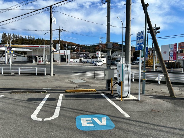 ゆっくりお蕎麦を頂きながら、クルマも満腹に。 30分で慌てなくていいのが良いですね。 でも、お店の正面なのでこれが充電器だと知らない人が前にエンジン車を停めちゃうんだろうな、という場所でした。