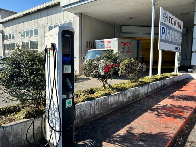豊田自動織機製3.2kw普通充電器が設置されていました。e-Mobility Power系カードから営業時間内で最大1時間まで利用できます。