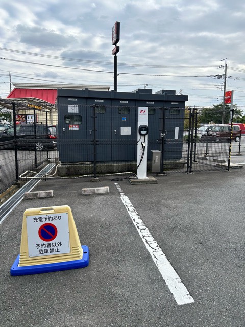 ZEROVA製6kw普通充電器がルートイン駐車場南東側に設置されていました。宿泊利用者以外の利用は15時までで、利用する際はフロントに充電利用の旨を伝える必要があります。宿泊する場合は、事前に予約できるのは非常に安心ですね。ただ、充電スペースは少し狭く駐車しづらいように感じました。充電区画は、普通の駐車枠よりも広めの幅でないと充電ケーブルなどが枠外に出てしまって危険になる可能性があるので、広めの駐車枠であると、より良いと思いました。