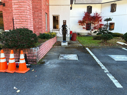 ご利用は宿泊者優先とさせていただきます。宿泊のお客様はホテルの公式サイトで詳細をご確認ください。 設置場所:国道4号線(西那須バイパス)より駐車場敷地内へ入り、エントランス前を直進した先、右側の車室にEV充電器があります。 充電器には鍵がかけられていますので、ご利用を希望される際にはフロントまでお申し付けください。 最大出力6kW