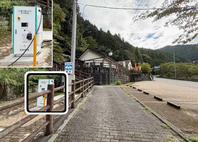 道路から見て左側の独立した車室にあります。 文書と写真追加 四国の中央のあたりのインフラはまだ充実しているとは言い難いかもしれません、、付近の道の駅にも50kWがありますが安心感があるとまではいかないかもしれません、また周辺のエリアで、他の充電スポットで更新されたり新しく増えることに期待したいです。Power XかFlashなどが道の駅にでき、エネチェンジなどの目的地充電も併設されるようになれば嬉しいです。