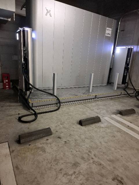 地下2階の一番奥に充電設備が2台あります 駐車スペースにはゆとりがあるので安心です。 ビジター用カードもありますので 1回 550円で高出力の充電が行えます 。とても便利でした。