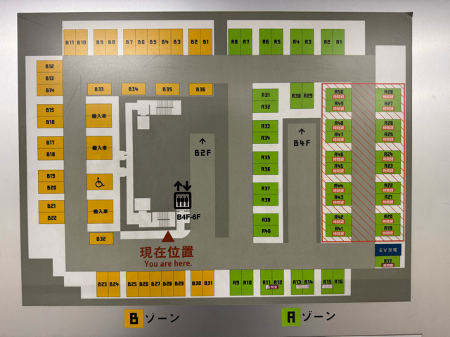 年中無休 設置場所:B2駐車場(入り口入って右側のゲートからしか入れません。) 7:30-9:30の間は警備員に要お声がけ。