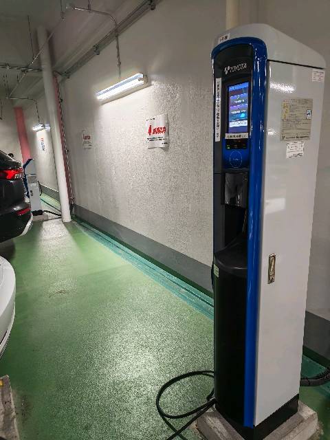 奥の方に充電器のある車室がありますが、最近EVが増えてきて、混雑している場合も多いです。近隣の充電器がある駐車場も合わせて探すといいと思います。