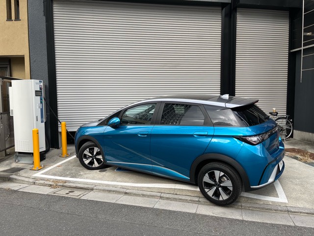 通りから入ってすぐのところにあります。 1時間しばりあり。 2kwちょっとしか充電できませんでした。