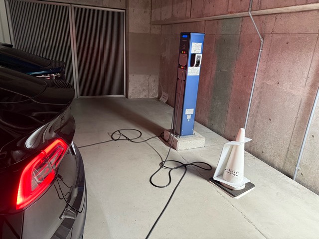 50kWと25kWの2基がおいてあります。50kWは自治体のEV充電有料化に伴って、使われる頻度が上がっているので、隙間を見ながら使う感じがいいと思います。