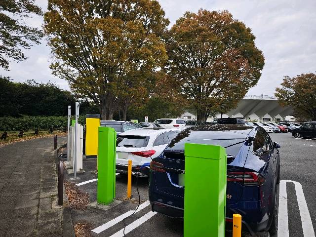 土日は充電枠が空いていても、満車になることが多いです。満車表示では入れません。また日によって、ガソリン車が大量に駐車していることもあります。テスラ モデルXで充電できました。