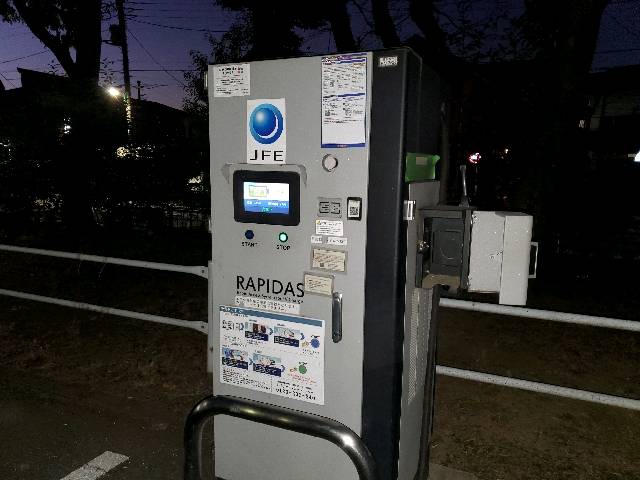 新電元工業(株)50kW充電器です。新青梅街道から見えます。営業時間内で使用可能とのことですが、営業時間外でも使えてました。