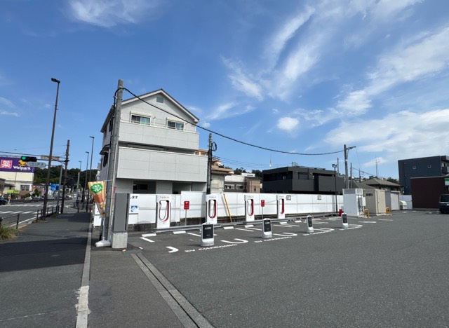 テスラSCです。4ストールあります。ファミリーマート八王子暁町店の店舗敷地入ってすぐ左手に設置されてます。
