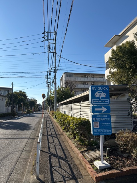 新しく都営住宅に出来てきている充電設備のひとつ。 高岳の50kVAなのでそこそこ充電も早いです。24時間使えるのも良いですね。三鷹市芸術文化センター脇を入ってすぐです。問川畳店の向かい側にあります。入口にEV Quickの看板もあるので迷わないかと思います。