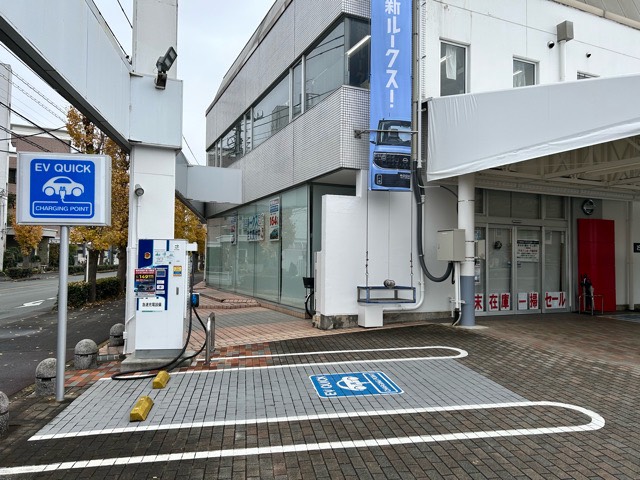 江戸街道沿いの日産東京販売 昭島店に設置されてます急速充電器です。店舗敷地に入ってすぐ左手にあります。