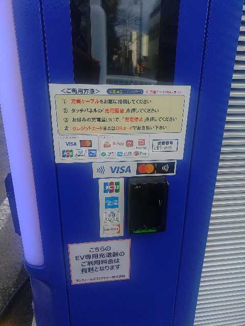 新しく入替ありました。ニチコン製50kW器です。町田駅方向から来ると中央分離帯あるので右折入庫出来ません。その先、ENEOS山崎団地SSにも50kW充電器あります。