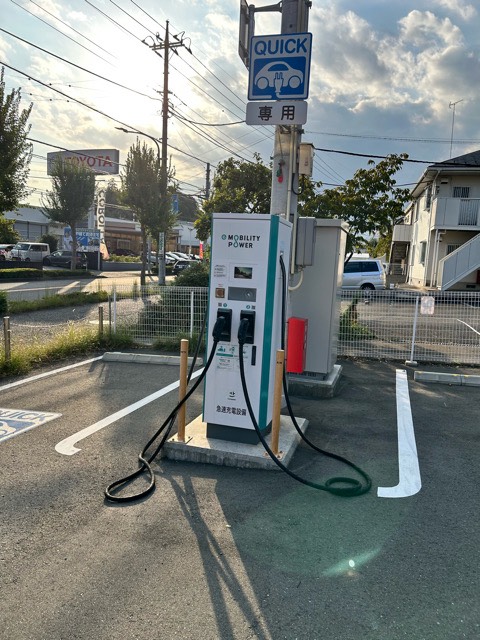 新電元工業(株)90kW×2口器です。多摩境駅西入口交差点側に設置されてます。店舗からは遠いのでガソリン車が停めてる事が少ないです。