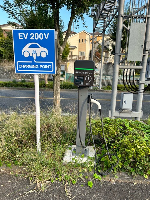 新しく入替ありました。ニチコン製50kW器です。町田駅方向から来ると中央分離帯あるので右折入庫出来ません。その先、ENEOS山崎団地SSにも50kW充電器あります。